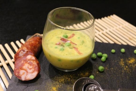 - Añade los chicharos y el resto del chorizo picado y los cilantros. Servir.