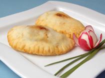 - Colocar una oliva en cada disco y plegarlo sobre sí mismo en forma de media luna. Sellar los extremos con un tenedor.