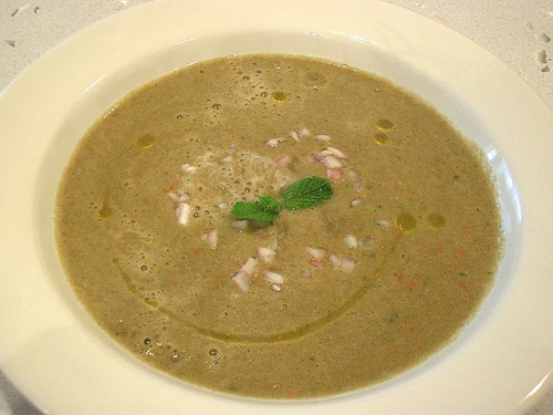 - Servir el gazpacho en un plato sopero, agregar en el centro los dados de tomates y los picatostes de pan frito especial.