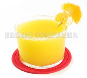 - Servimos el zumo al instante en vasos individuales, acompañado de unos trocitos de manzana y mandarinas insertadas en pequeñas brochetas.